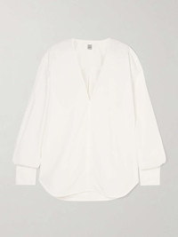 EDITORS'NOTES TOTEME’s polished approach results in timeless styles that you’ll re-wear time and time again. This shirt is cut from crisp organic cotton-poplin in an oversized fit and has a deep V-neckline and back pleat for movement through the shoulders. SIZE & FIT Model measurements: - Intended to be oversized; we recommend sizing down if you prefer a closer fit - Mid-weight, non-stretchy fabric - Model is 180cm/ 5'11" and is wearing a DK 36 - Bust: 80cm/ 31.5" - Waist: 67cm/ 26" - Hip: 89cm/ 35" DETAILS & CARE - White organic cotton-poplin - Slips on - 100% organic cotton