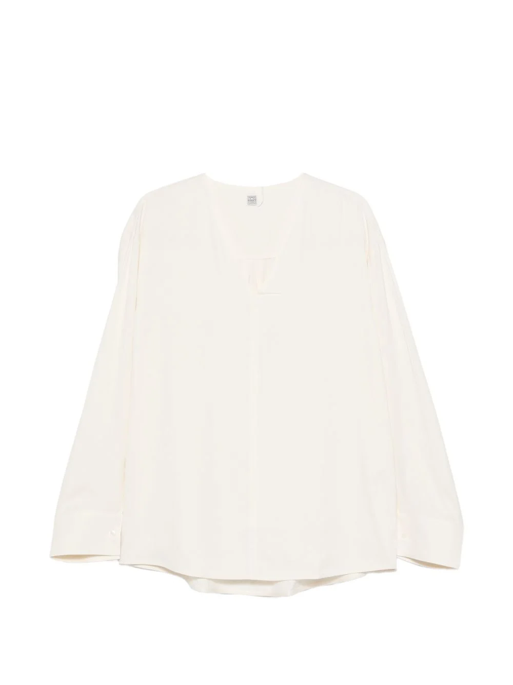 V-neck long-sleeved top Highlights - White - V-neck - Long-sleeved - Buttoned cuffs - Straight hem Imported Composition Viscose 100% Washing instructions Dry Clean Only