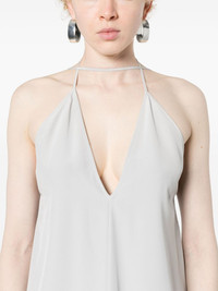 Double-Halter silk top Highlights - Grey - Spaghetti straps - Plunging v-neck - V-back - Full lining - Straight hem Imported Composition Silk 100% SIZE & FIT Model measurements Height 5 ft 9 in(1.75 m) Bust/Chest 34.64 in(88 cm) Hips 36.61 in(93 cm) Waist 26.37 in(67 cm) FittingInformation Designed to be unstructured, offering a loose fit throughout Made from a midweight non-stretch fabric This piece fits true to size – take your usual size