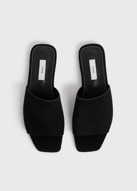 TOTEME slides crafted from soft velour leather with a minimalistic bandeau-style upper. They have a leather insole and sole and are slightly padded at the heel for comfort. Slip them on under dresses and skirts. Details & Fit - Black - Leather lining and sole - 100% cow leather - Care instructions and dust bag included - Style number 253-WAS0244-LE0004 - True to size