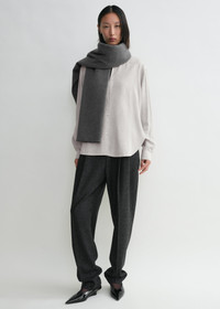 A wider, shorter iteration of TOTEME's classic wool scarf outlined with a 170x70cm frame. It is crafted in Italy from light and soft virgin wool finished with fringed edges, adding subtle texture to classic winter edits. Details & Fit - Mid grey - 100% wool RWS - Dry clean - Style number 251-WSC0079-FB0050 - Length 170cm/67" - Width 70cm/27.5"