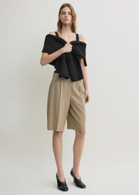 A knee-length variation of our Wide fluid trousers, cut to a sharp, wide hem from fluid viscose and finished with traditional tailoring cues. Balance the silhouette with an oversized or sculptural knit. Details - Taupe - Hook and zipper front - Tilted side pockets - Two jet pockets at back - 60% viscose, 40% RWS wool - Dry clean - Style number 262-WRB0455-FB0475 Fit information - The model is 180cm/5’11” tall and wears a size 36 Origin & Certificates - This product contains 40% Responsible Wool Standard (RWS) certified wool, certified by Control Union, license number 1154443 - Made in Portugal - Manufacturer: Pedro Portuguesa Lda - Material woven in Italy; dyed in Italy