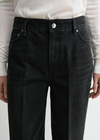 A relaxed interpretation of our Tapered leg denim combining the ease of wide-leg jeans with the tailored appeal of trousers. This style sits low on the hips, curves through the legs and tapers toward the ankle. Details & Fit - Faded black - Zipper fly, silver-tone hardware - Five pockets, belt loops, finished hem - Leather patch - 100% organic cotton - 30°C machine wash; avoid rubbing against light-colored fabrics and surfaces as some discoloration may occur - 234-2037-744 - Model is 178cm/510 tall and wears a size 26/34 - Low waist, carrot-leg silhouette designed for a loose fit and to sit on the hips, ankle length - Consider taking a size down for a neater and higher-waist fit