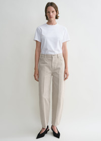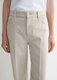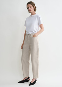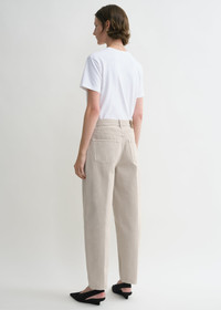 A relaxed interpretation of our Tapered leg denim combining the ease of wide-leg jeans with the tailored appeal of trousers. This style sits low on the hips, curves through the legs and tapers toward the ankle. Details & Fit - Smoke grey - Zipper fly, silver-tone hardware - Five pockets, belt loops, finished hem - Leather patch - 100% organic cotton - 30°C machine wash - 234-2037-748 - Model is 178cm/510 tall and wears a size 26/34 - Low waist, carrot-leg silhouette designed for a loose fit and to sit on the hips, ankle length - Consider taking a size down for a neater and higher-waist fit