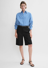 TOTEME shorts tailored from classic suiting canvas for an impeccable drape. They have a high waist followed by press-creased straight legs with side and back pockets and fasten with a simple hook and zipper fly. Wear them with a shirt and sandals for a day in the city. Details & Fit - Black - Belt loops - Side and back pockets - Zipper fly - 55% recycled polyester, 45% wool RWS - Dry clean - Style number 243-WRB0196-FB0026 - The model is 176cm/59 tall and wears a size 36 - True to size