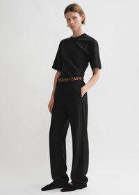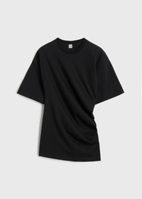 TOTEME T-shirt with a twisted construction as a reinterpretation of a classic wardrobe staple through a modern lens. It has relaxed short sleeves and a fitted waist made from comfortable organic-cotton jersey. Tuck it into trousers to work. Details & Fit - Black - 100% organic cotton - 30°C Machine wash - Style number 243-WRT0342-FB0092 - The model is 176cm/59 tall and wears a size S - True to size, slim fit