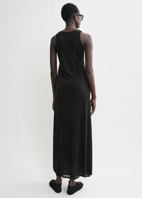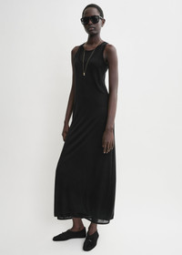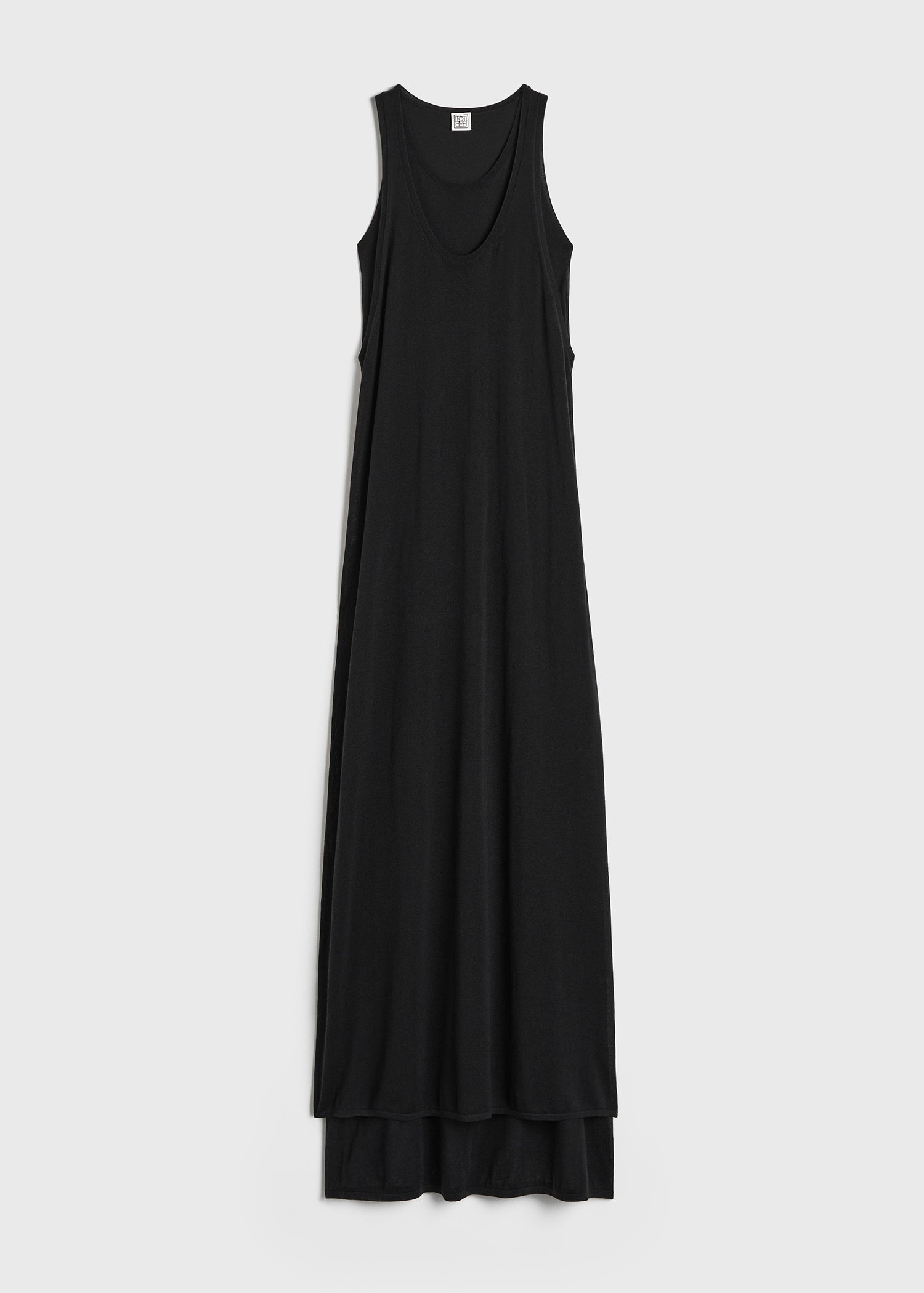 Long TOTEME dress layered to create the illusion of two tank dresses in one. It is finely knitted from semi-sheer Lyocell blended with cashmere to a regular-fitting silhouette that drapes to floor-sweeping length. Wear it as an effortless summer piece. Details & Fit - Black - 89% Lyocell, 10% cashmere, 1% polyamide - Cool hand wash - Style number 243-WRD0128-YA0079 - The model is 180cm/511 tall and wears a size S - True to size