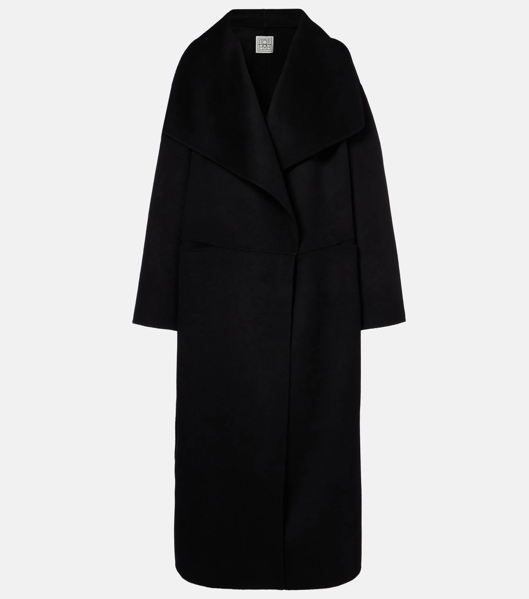 Define your dress code with styles from Toteme, a Stockholm-based brand dedicated to creating a modern uniform. Shaped into a soft oversized silhouette, this elegant coat is crafted from two fine layers of wool and cashmere to achieve a double-faced finish. Product Details - Material: 90% wool, 10% cashmere - Care instructions: dry clean - Made in China - Designer color name: Black - Item color: black - Lining: 100% viscose - Pockets: welt pockets - Closure: open front - Vent: double - Item number: P01102038 Size & Fit - Fits large to size - we recommend trying one size smaller - Dropped shoulders - Oversized - Non-stretchy fabric - The model seen in the picture is 178cm-5'10" and wearing a size XS