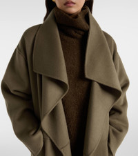 Define your dress code with styles from Toteme, a Stockholm-based brand dedicated to creating a modern uniform. Shaped into a soft, oversized silhouette, this elegant coat is crafted from two fine layers of wool and cashmere to achieve a double-faced finish. Product Details - Material: 90% wool, 10% cashmere - Care instructions: dry clean - Made in China - Designer color name: Hazel - Item color: brown - Lining: 100% viscose - Pockets: welt pockets - Closure: open front - Vent: double - Item number: P01102037 Size & Fit - Fits large to size - we recommend trying one size smaller - Dropped shoulders - Oversized - Non-stretchy fabric - slit length 52,0cm-20.5" - The model seen in the picture is 178cm-5'10" and wearing a size XS