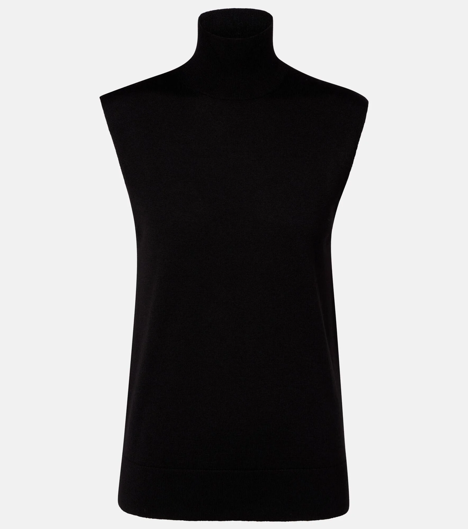 Define your dress code with styles from Toteme, a Stockholm-based brand dedicated to creating a modern uniform. This turtleneck sweater vest is knitted from a luxurious blend of wool and silk, complete with side slits. Product Details - Material: 75% wool, 25% silk - Care instructions: hand wash cold - Made in China - Color: black - Designer color name: Black - Item color: black - Trim: 68% wool, 21% silk, 9% polyamide, 2% elastane - Collar: turtleneck - Hem: ribbed - Item number: P01136685 Size & Fit - True to size - Straight fit - Stretchy fabric - Falls to the hip - The model seen in the picture is 178cm-5'10" and wearing a size XS