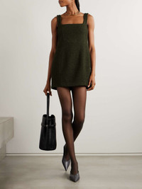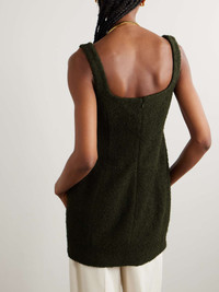 "We create emblematic designs with an emphasis on materiality and shape," says TOTEME. This top is made from textured wool-blend boucle that gently nips in at the darted waist and has a scooped neckline. Wear yours with tonal tailoring or styled as a mini dress with tights. Size & Fit TOTEME follows its own size guide, please refer to below: - DK 32 = UK 4/ US 0/ IT 36 - DK 34 = UK 6/ US 2/ IT 38 - DK 36 = UK 8/ US 4/ IT 40 - DK 38 = UK 10/ US 6/ IT 42 - DK 40 = UK 12/ US 8/ IT 44 - DK 42 = UK 14/ US 10/ IT 46 - Fits true to size, take your normal size - Designed for a slim fit - Mid-weight knit - Model is 180cm/ 5'11" and is wearing a DK 36 Model measurements: - Bust: 80cm/ 31.5" - Waist: 65cm/ 25.5" - Hip: 89cm/ 35" Details & Care - Army-green wool-blend boucle - Concealed zip fastening along back - 41% recycled wool, 31% virgin wool, 28% polyamide - Dry clean