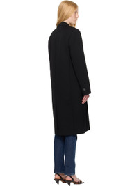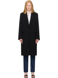 Wool-blend canvas coat. · Notched lapel · Button closure · Welt pockets · Padded shoulders · Surgeon's cuffs · Central vent at back hem · Welt pocket at interior · Full viscose satin lining Supplier color: Black Body: 75% wool, 25% polyamide. Lining: 100% viscose. Made in Romania 252771F059000