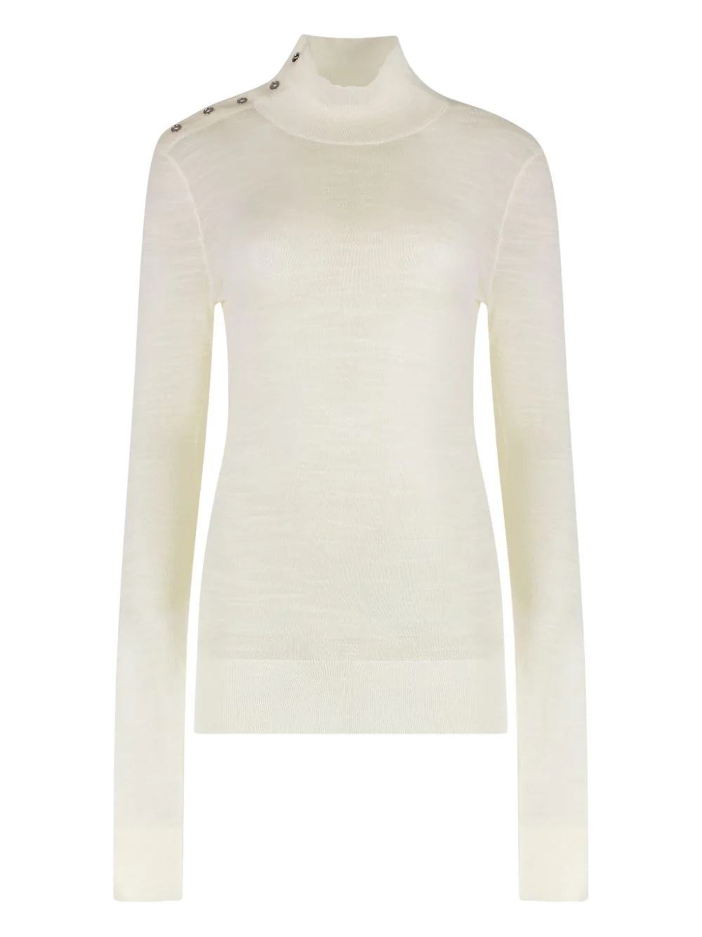 wool-blend jumper Highlights - Off-white - Turtleneck neckline - Shoulder button details - Long sleeves - Ribbed cuffs Imported Composition Wool 96%, Polyamide 4% Washing instructions Read Manufacturer Guidelines