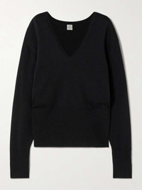 TOTEME's designs are loved for their luxurious fabrications and everyday wearability. This sweater is made from a cozy wool-blend and has a relaxed fit with a V-neckline and wide, tapered hem. Size & Fit - Fits true to size, take your normal size - Designed for a relaxed fit - Mid-weight knit - Model is 180cm/ 5'11" and is wearing a size Small Model measurements: - Bust: 80cm/ 31.5" - Waist: 65cm/ 25.5" - Hip: 89cm/ 35" Details & Care - Black wool-blend - Slips on - 92% wool, 7% polyamide, 1% elastane - Hand wash or dry clean