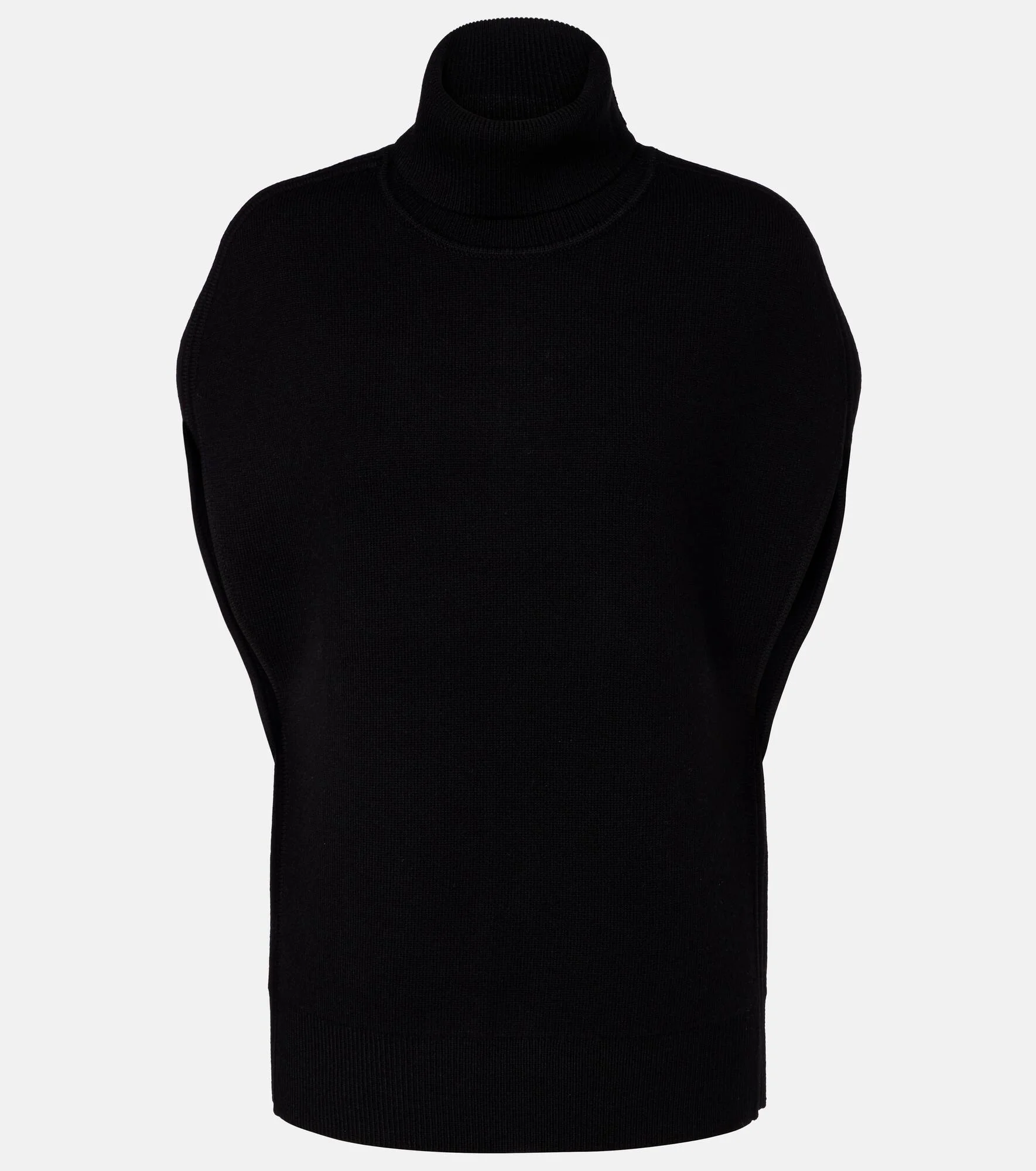 Define your dress code with styles from Toteme, a Stockholm-based brand dedicated to creating a modern uniform. This top is made to a high-neck cape-like silhouette from a double-knitted wool-blend. Product Details - Material: 97% wool, 2% nylon, 1% elastane - Care instructions: hand wash - Made in China - Color: black - Designer color name: Black - Item color: black - Collar: rollneck - Item number: P01136606 Size & Fit - True to size - Straight fit - Slightly stretchy fabric - Falls below the hip - The model seen in the picture is 178cm-5'10" and wearing a size XS