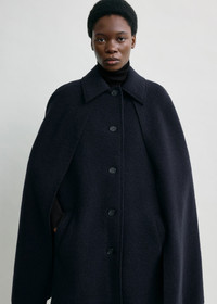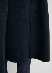 The season's new cape jacket, made from warm wool boucle with a raw edge finish. Wear it with denim to spend a day in the city. Details - Navy - Buttoned front - Welt pockets - Raw edges - 100% RWS wool - Dry clean - Style number 261-WRO0265-FB0549 Fit information - The model is 180cm/5'11” tall and wears a size 36 - Loose fit, straight silhouette Origin & Certificates - Country of origin: Romania - Manufacturer: SC Simiz Fashion SRL
