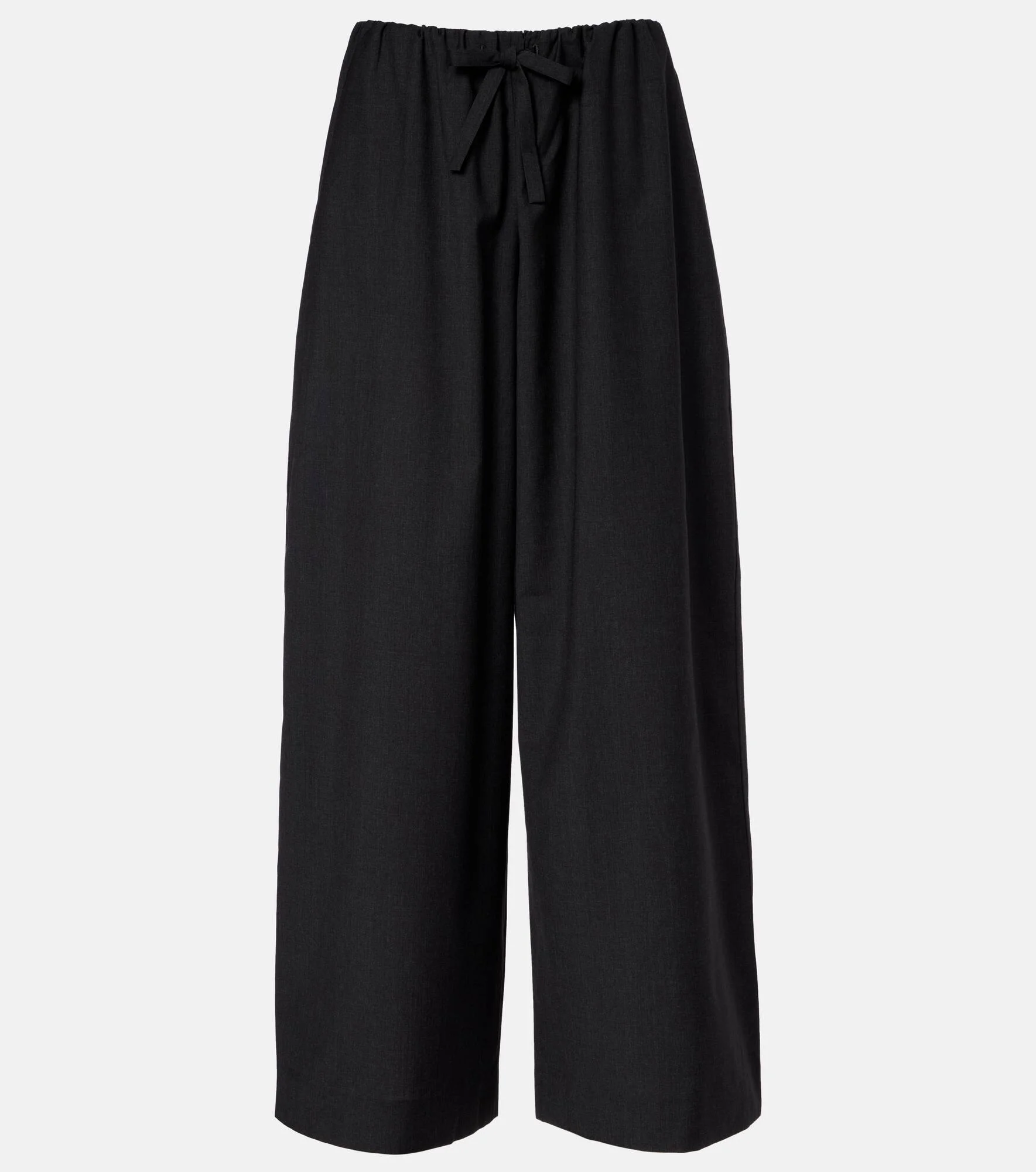 Define your dress code with styles from Toteme, a Stockholm-based brand dedicated to creating a modern uniform. These wide-leg pants are made from pure wool. Product Details - Material: 100% wool - Care instructions: dry clean - Made in Portugal - Designer color name: Charcoal Melange - Item color: black - Elasticated drawstring waist - Pockets: side slit pockets - Item number: P01136640 Size & Fit - True to size - Elasticated waist - Adjustable at the waist - Non-stretchy fabric - Wide-leg - The model seen in the picture is 178cm-5'10" and wearing a size DE 34