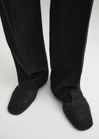 TOTEME flats reworked in intricately hand-woven leather to echo our knitted ballerinas. Made in Italy, they have a natural, foot-hugging shape and are set on a smooth leather insole. Let them peep below trousers and jeans. Details & Fit - Black - Woven leather upper - Leather insole and sole - Rubber sole insert - 100% sheep leather; lining: 100% cow leather; sole: 100% cow leather - Care instructions and dust bag included - Style number 252-WAS2358-LE0134 - True to size, snug fit will mold to feet with time