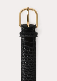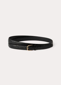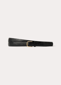 TOTEME belt conceived to wrap playfully around the waist twice. It's crafted in Italy from crocodile-debossed leather with a smooth leather reverse and fastens with an engraved gold-tone buckle. Pair it with a leather dress for a confident result. Details & Fit - Black croco - Golden buckle - Smooth lining - 100% Cow leather - Care instructions included - Style number 231-9002-731 - Length 188cm/74" (measured from leather edge to leather edge) - Width 2.5cm/1" - One size, adjustable fit