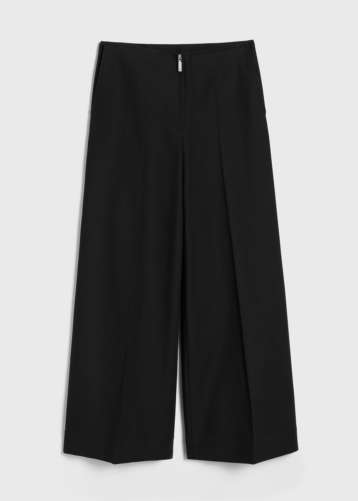 Zip-front wide trousers black