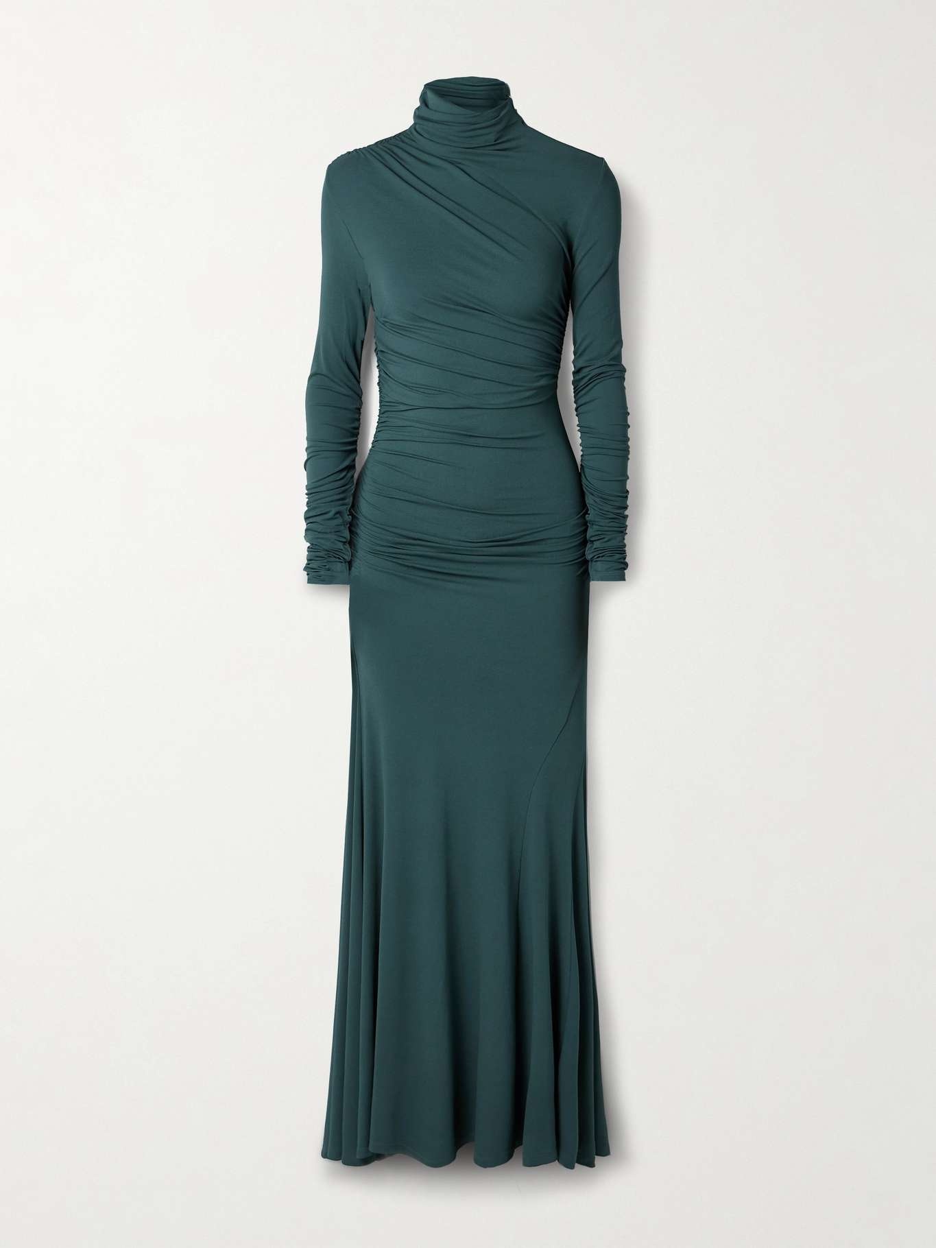 Africa ruched stretch-jersey turtleneck maxi dress