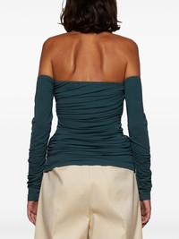 Amara top Highlights - Teal blue - Off-shoulder - Long sleeves - Ruched detailing Imported Composition Viscose 92%, Elastane 8% Washing instructions Hand Wash