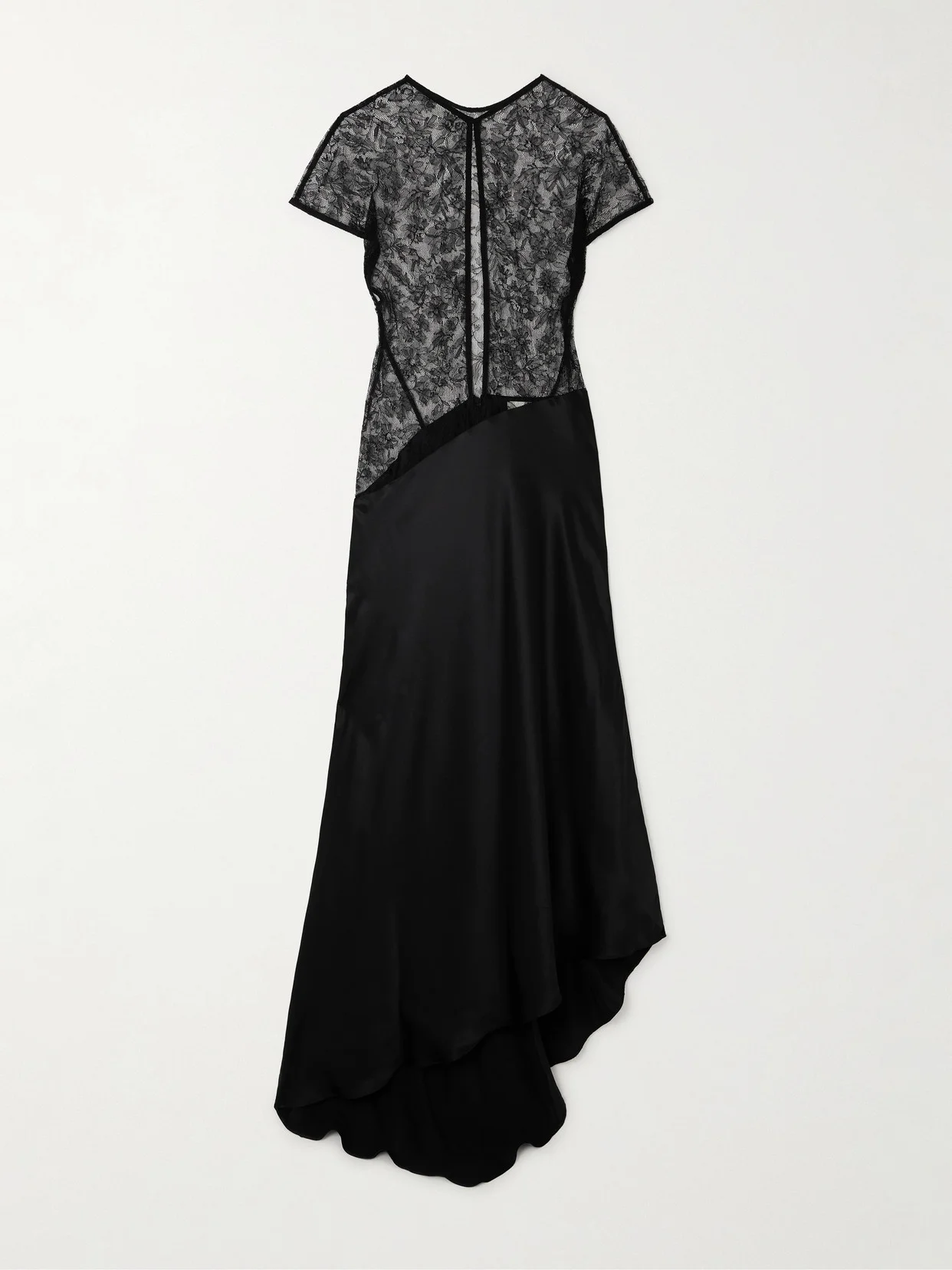 TOVE's Spring '24 collection exudes sultry glamour. Worn on the runway, this 'Beline' dress has a sheer floral-lace bodice and an asymmetric silk-satin skirt. Complete your look with a spritz of perfume and low-heeled mules.