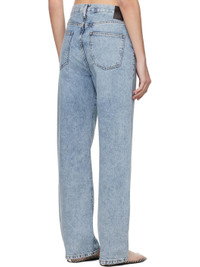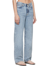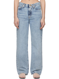 Non-stretch recycled cotton-blend denim jeans. Fading and whiskering throughout. · Loose-fit and straight-leg · Mid-rise · Belt loops · Five-pocket styling · Zip fly · Logo patch at back waistband · Contrast stitching in tan Supplier color: Mid blue 60% recycled cotton, 40% cotton. Made in Italy 252933F069000