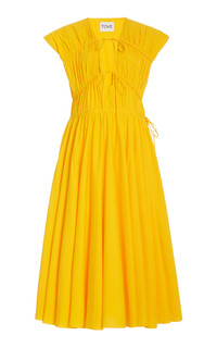 Ceres Pleated Organic Cotton Midi Dress yellow