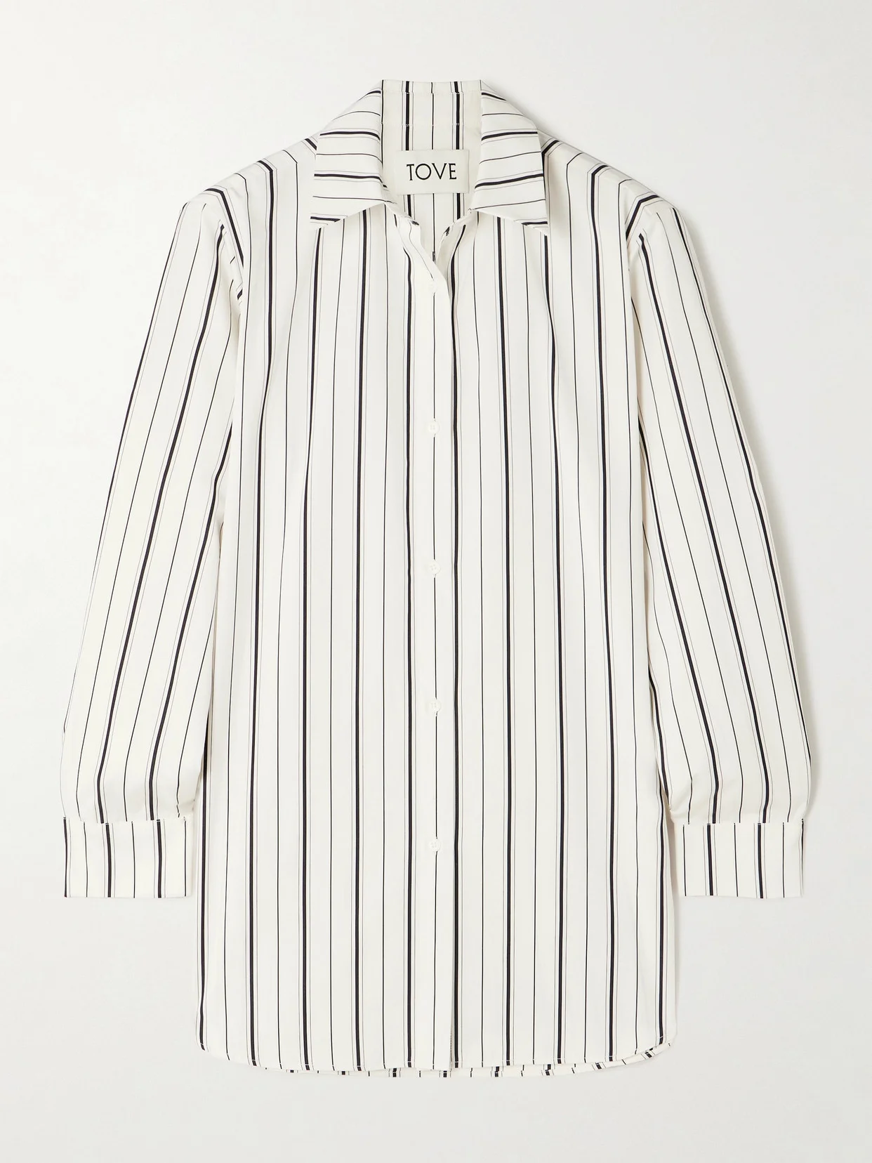Hardworking wardrobe essentials that live up to modern lifestyles are TOVE's forte. This 'Damita' shirt has been cut in Portugal from crisp, breathable cotton-poplin patterned with classic stripes. The loose shape and spread collar exude effortless sophistication.