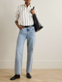 EDITORS'NOTES Hardworking wardrobe essentials that live up to modern lifestyles are TOVE's forte. This 'Damita' shirt has been cut in Portugal from crisp, breathable cotton-poplin patterned with classic stripes. The loose shape and spread collar exude effortless sophistication. SIZE & FIT Model measurements: - Fits true to size, take your normal size - Designed for a loose fit - Mid-weight, non-stretchy fabric - Model is 180cm/ 5'11" and is wearing a FR 36 - Bust: 80cm/ 31.5" - Waist: 65cm/ 25.5" - Hip: 89cm/ 35" DETAILS & CARE - Off-white and black cotton-poplin - Button fastenings through front - 100% cotton - Machine wash