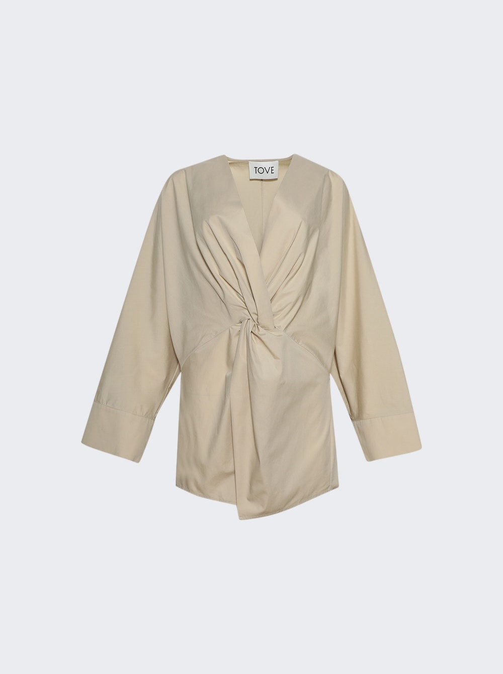 Details - Oversized, longline silhouette - V neckline - Twist front detail - Wide sleeves Dimensions: Model is 5'9"/175cm and is wearing a size FR36 Composition: 100% Cotton Care: Care according to label Brand Style: TVB114SND Designer/Brand: TOVE