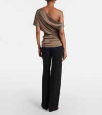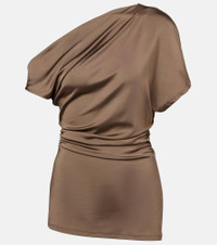 The Edel Top from Tove has an asymmetrical off-shoulder silhouette that complements its fluid jersey construction. The design has ruching down the sides to create an effortless draped look. Product Details - Material: 96% viscose, 4% elastane - Care instructions: dry clean - Made in Portugal - Designer color name: Natural Brown - Item color: brown - Item number: P01058107 Size & Fit - True to size - Fitted - Stretchy fabric - Falls below the hip - The model seen in the picture is 178cm-5'10" and wearing a size FR 36