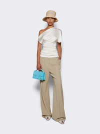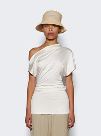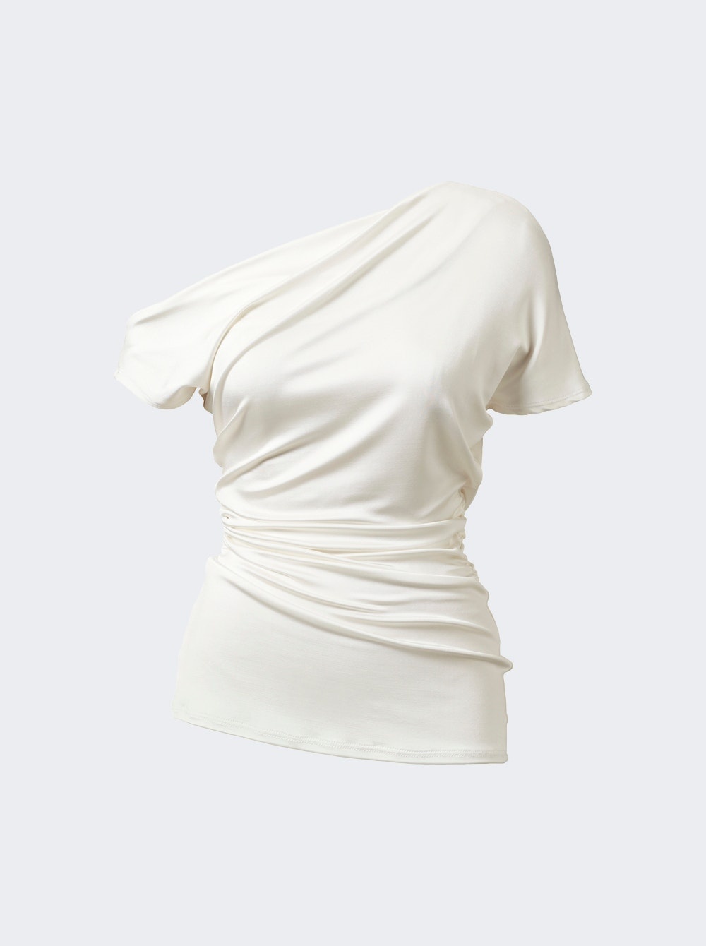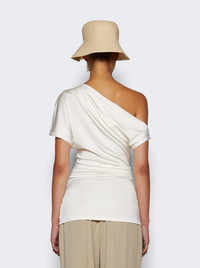 Details - Asymmetrical off-the-shoulder top - Neckline drapes effortlessly to a delicate ruched detail at the side seams - Made from luxurious viscose jersey Dimensions: Model is 5'9"/175cm and is wearing a size FR36 Composition: 96% Viscose, 4% Elastane Care: Care according to label Brand Style: TVE016WHT Designer/Brand: TOVE