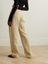 EDITORS'NOTES When it comes to versatility, TOVE's 'Gabrielle' pants really will go the extra mile. They're made from lightweight 'Stone' linen in a wide-leg shape and have a high-rise waist. Wear yours with everything from oversized shirts to bodysuits and simple tees. SIZE & FIT - Fits true to size, take your normal size - High-rise, designed for a wide-leg fit - Particularly long in length - Mid-weight, non-stretchy fabric - Model is 175cm/ 5'9" and is wearing a FR 36 DETAILS & CARE - Beige linen - Concealed button, hook and zip fastening at front - 100% linen - Designer color: Stone