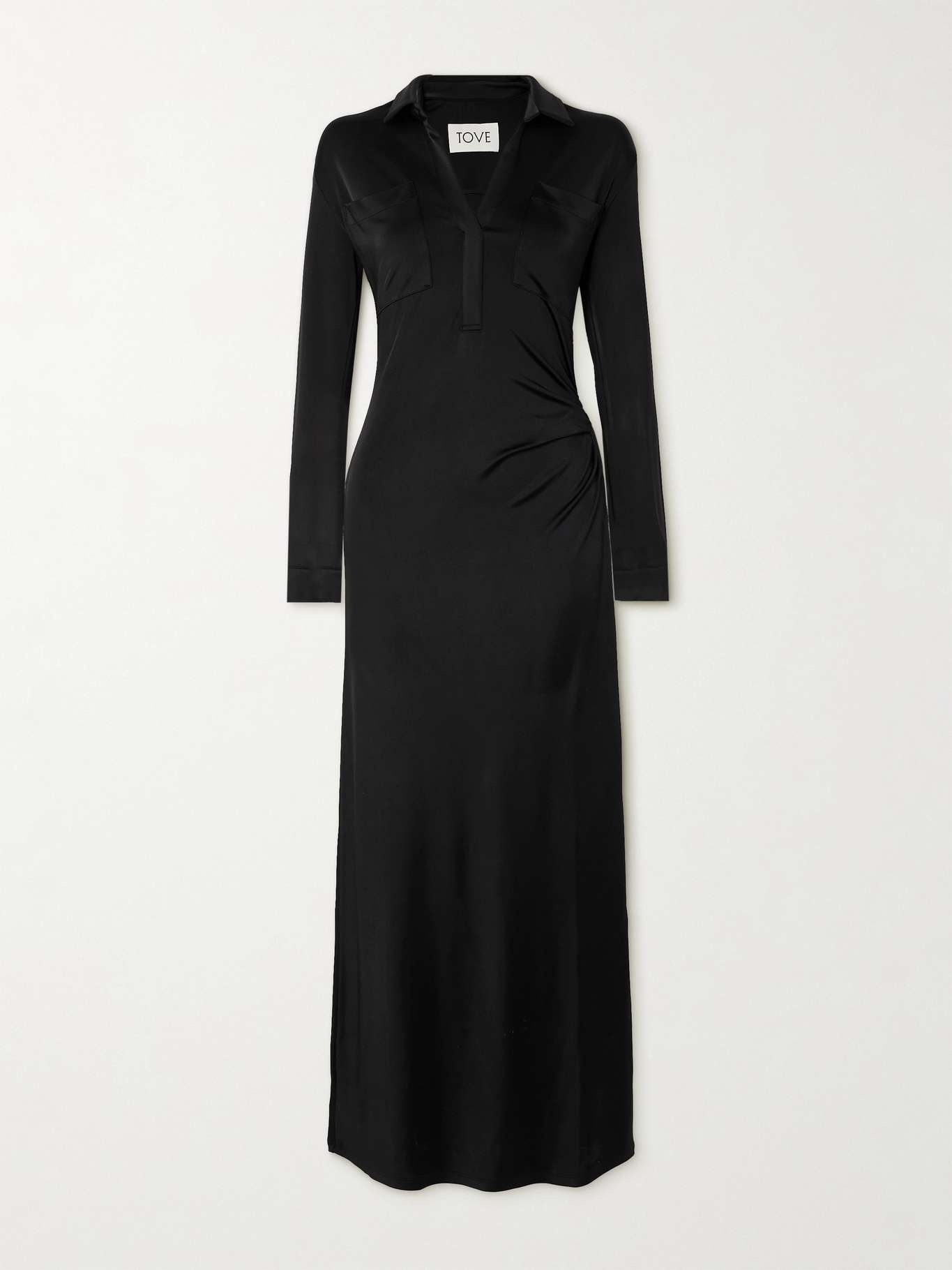 EDITORS'NOTES TOVE is named after the Danish word for strength and beauty - characteristics that underpin each of its designs. Part of the Spring '24 collection, the 'Iana' dress is cut from fluid stretch-jersey in a shirt-inspired silhouette with a V-neckline and gathered waist. Wear yours with kitten heels to dinner. SIZE & FIT - Fits true to size, take your normal size - Designed for a close fit - Mid-weight, stretchy fabric - Model is 180cm/ 5'11" and is wearing a FR 36 DETAILS & CARE - Black stretch-jersey - Slips on - 96% viscose, 4% elastane - Dry clean
