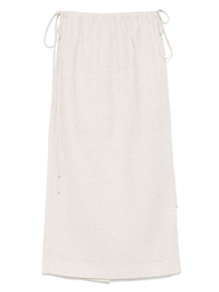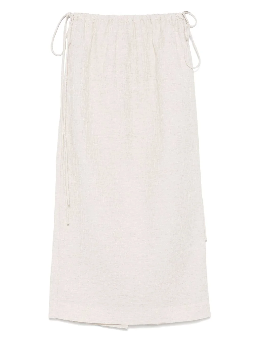Isa midi skirt Highlights - Ecru - Elasticated drawstring waistband - Central rear vent Imported Composition Cotton 64%, Polyamide 22%, Linen/Flax 13%, Elastane 1% SIZE & FIT Model measurements Height 5 ft 9 in(1.75 m) Bust/Chest 34.64 in(88 cm) Hips 36.61 in(93 cm) Waist 26.37 in(67 cm) FittingInformation This midi-length skirt is intended to be worn high on the waist The vented hem offers movement at the rear Made from a midweight stretch fabric, this piece offers elasticity and flexibility when worn