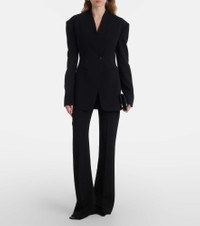 Product Details - Material: 58% viscose, 38% wool, 4% elastane - Care instructions: dry clean - Made in Portugal - Designer color name: Black - Closure: zip, hook, and button fastening - Lining: 100% viscose - Item number: P01020353 Size & Fit - True to size - Non-stretchy fabric - Slim-leg with a flared hem - The model seen in the picture is 178cm-5'10" and wearing a size FR 36