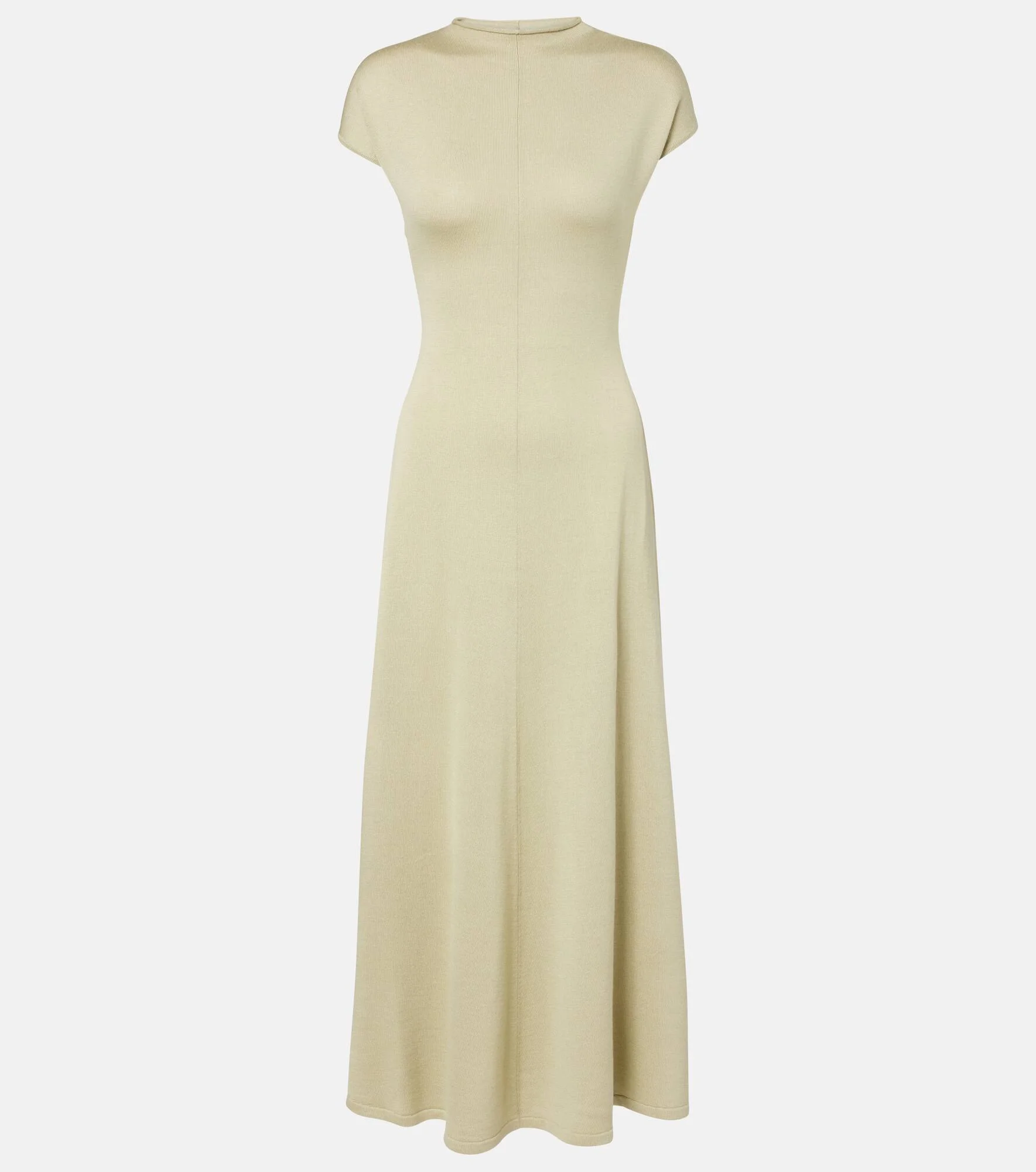 Minimalist and elegant, the Lenore midi dress from Tove is a must-have for any well-rounded edit. Finely knitted from wool and silk yarns, this design comes with short sleeves, a high neck, and a front seam. Product Details - Material: 75% wool (merino wool), 25% silk - Care instructions: dry clean - Made in China - Designer color name: Sage - Item color: green - Item number: P01070935 Size & Fit - True to size - Cinched waist - Stretchy fabric - The model seen in the picture is 178cm-5'10" and wearing a size XS