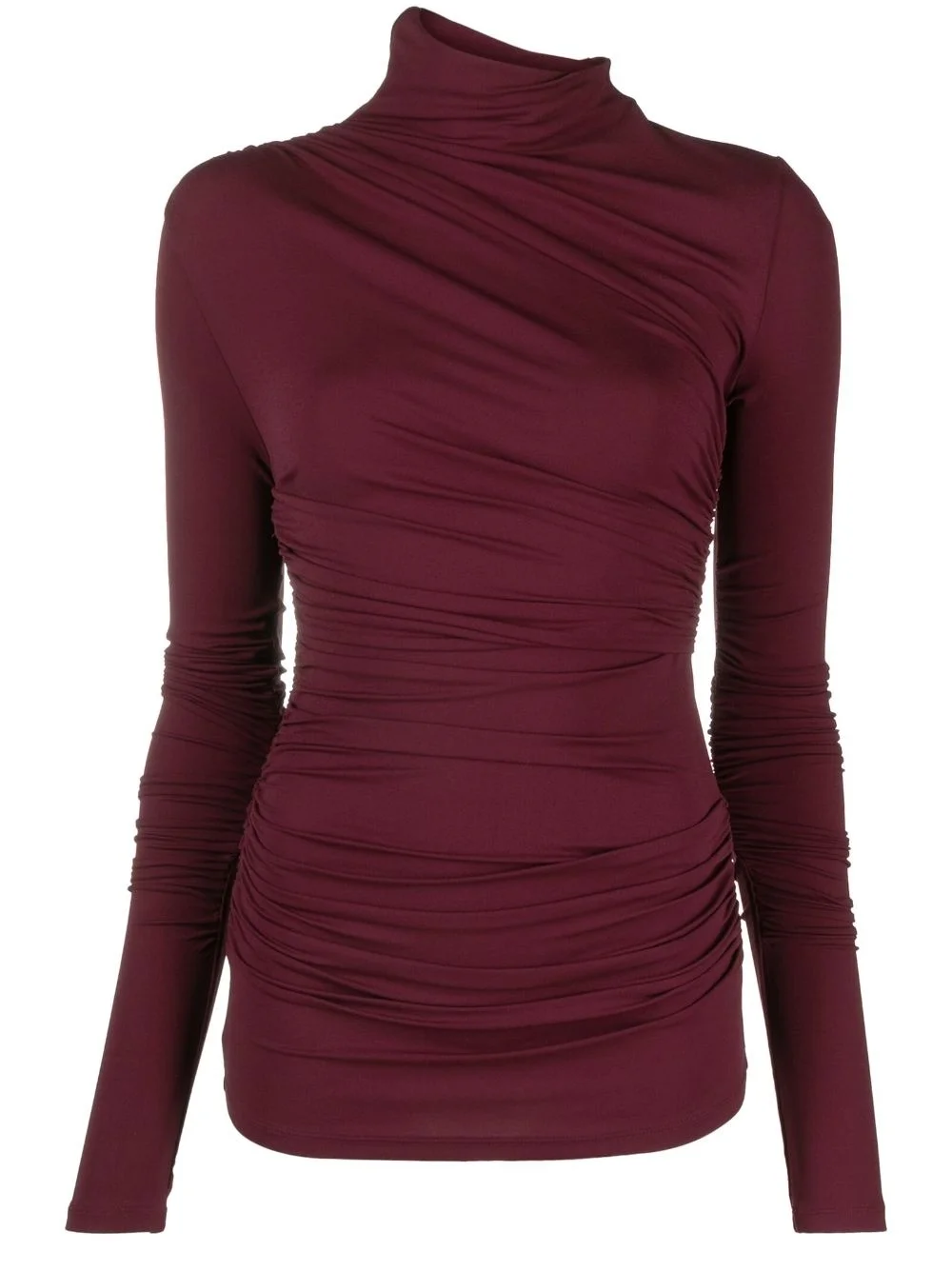 Leomie asymmetric ruched top TOVE spotlights its propensity for draping techniques with this Leomie top. It’s cut from stretch jersey and characterised by asymmetric ruching that creates a dynamic look. Highlights - Dark red - Stretch-jersey - Asymmetric design - Ruched detailing - High neck - Long sleeves - Straight hem Imported Composition Viscose 92%, Spandex/Elastane 8% SIZE & FIT Model measurements Height 5 ft 11 in(1.8 m) Bust/Chest 34.25 in(87 cm) Hips 35.82 in(91 cm) Waist 24.8 in(63 cm) FittingInformation Designed for a slim fit that sits just away from the body offering a close yet comfortable fit Made from a midweight stretch fabric, this piece offers elasticity and flexibility when worn This piece fits true to size – take your usual size Measurement SLEEVE LENGTH 25.98 in(66 cm) LENGTH 22.99 in(58.4 cm) WAIST 22 in(55.9 cm) BUST 27.99 in(71.1 cm)