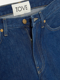 TOVE's 'Sade' jeans are made from denim that's blended with 54% recycled fibers. They have a comfortable high-rise waist and classic straight legs and come in a deep indigo wash. Size & Fit - Fits true to size, take your normal size - High-rise, cut for a straight-leg fit - Mid-weight, non-stretchy fabric - Size 26 jeans have an inside leg of 29.5"/ 75cm - Model is 180cm/ 5'11" and is wearing a size 26 Model measurements: - Bust: 80cm/ 31.5" - Waist: 65cm/ 25.5" - Hip: 89cm/ 35" Details & Care - Indigo recycled-denim - Button and concealed zip fastening at front - 46% cotton, 46% recycled cotton, 8% recycled polyester - Machine wash