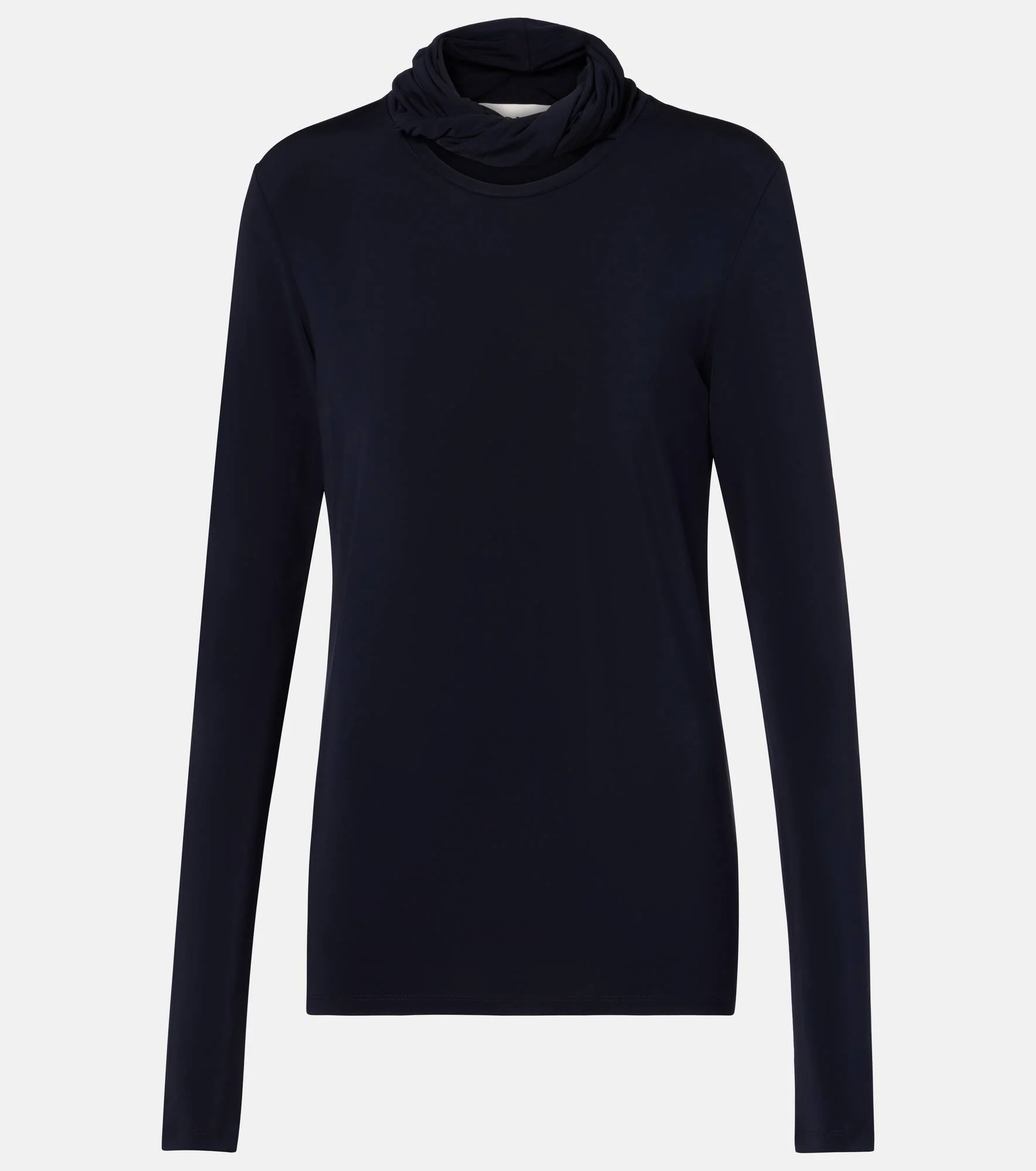 For those drawn to subtle sophistication, Tove delivers elevated pieces with effortless elegance. The Lisette turtleneck top is made from fluid jersey and features a twist detail at the neck. Product Details - Material: 95% viscose, 5% elastane - Care instructions: machine wash at 30 degrees - Made in Portugal - Designer color name: Navy - Item color: blue - Item number: P01070910 Size & Fit - True to size - Fitted - Stretchy fabric - Falls below the hip - The model seen in the picture is 178cm-5'10" and wearing a size FR 36
