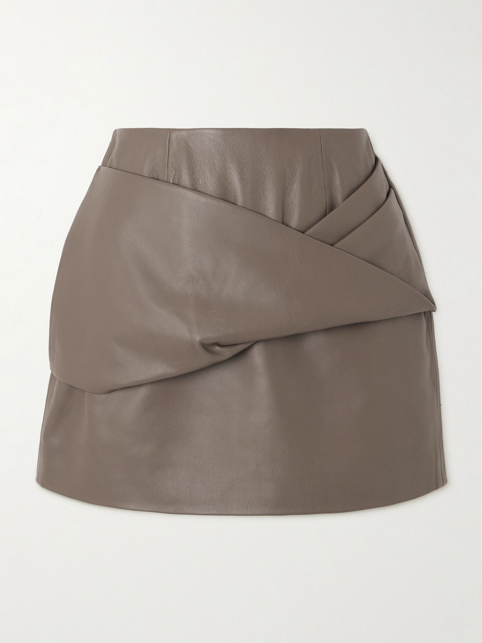 TOVE’s ‘Liss’ skirt features a twisted front panel that adds a sculptural touch to its minimalist design. It's made from supple leather in a versatile taupe shade to match the coordinating 'Magda' jacket in our edit, and also looks chic with a collared shirt. Size & Fit - Fits true to size, however those who are between sizes should take the smaller size - Mini-length, designed to be worn at the waist - Supple, non-stretchy leather - Model is 177cm/ 5'10" and is wearing a FR 34 Model measurements: - Bust: 86cm/ 34" - Waist: 65cm/ 25.5" - Hip: 90cm/ 35.5" Details & Care - Taupe leather - Concealed zip fastening along side - 100% leather (Lamb) - Specialist clean