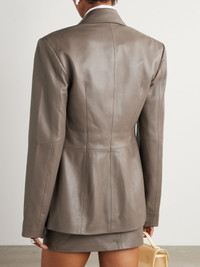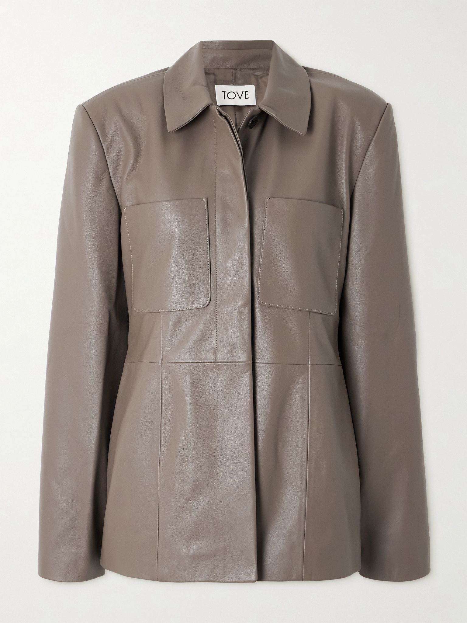 TOVE’s ‘Magda’ jacket is made from buttery leather with a paneled design that feels modern, versatile and effortlessly cool. Complete with patch pockets and structured shoulders, it has a concealed placket that lends a streamlined finish. Wear it as a set with the matching 'Liss' skirt. Size & Fit - Fits true to size, however those who are between sizes should take the smaller size - Designed for a slim fit - Supple, non-stretchy leather - Model is 177cm/ 5'10" and is wearing a FR 34 Model measurements: - Bust: 86cm/ 34" - Waist: 65cm/ 25.5" - Hip: 90cm/ 35.5" Details & Care - Taupe leather - Concealed button fastenings through front - 100% leather (Lamb) - Specialist clean