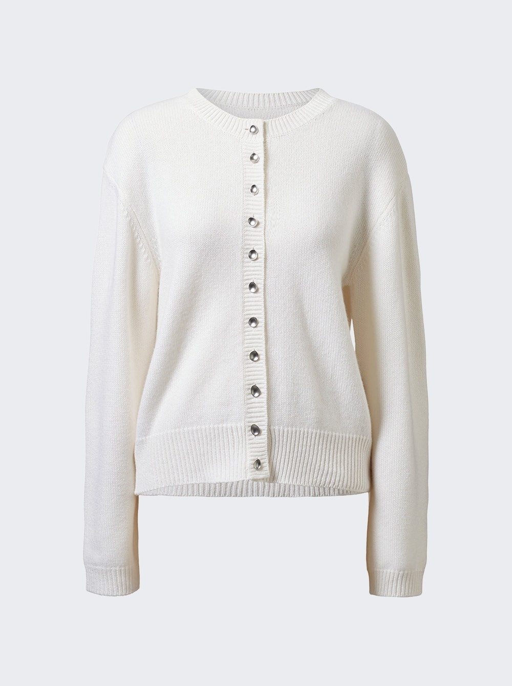 Details - Regular fit - Long sleeves - Crewneck - Button fastening - Ribbed cuffs and hem - Straight hem - Care according to label - 100% Cashmere - Model is 5'9"/175cm and is wearing a size S Brand Style: TVN009WHT Designer/Brand: TOVE