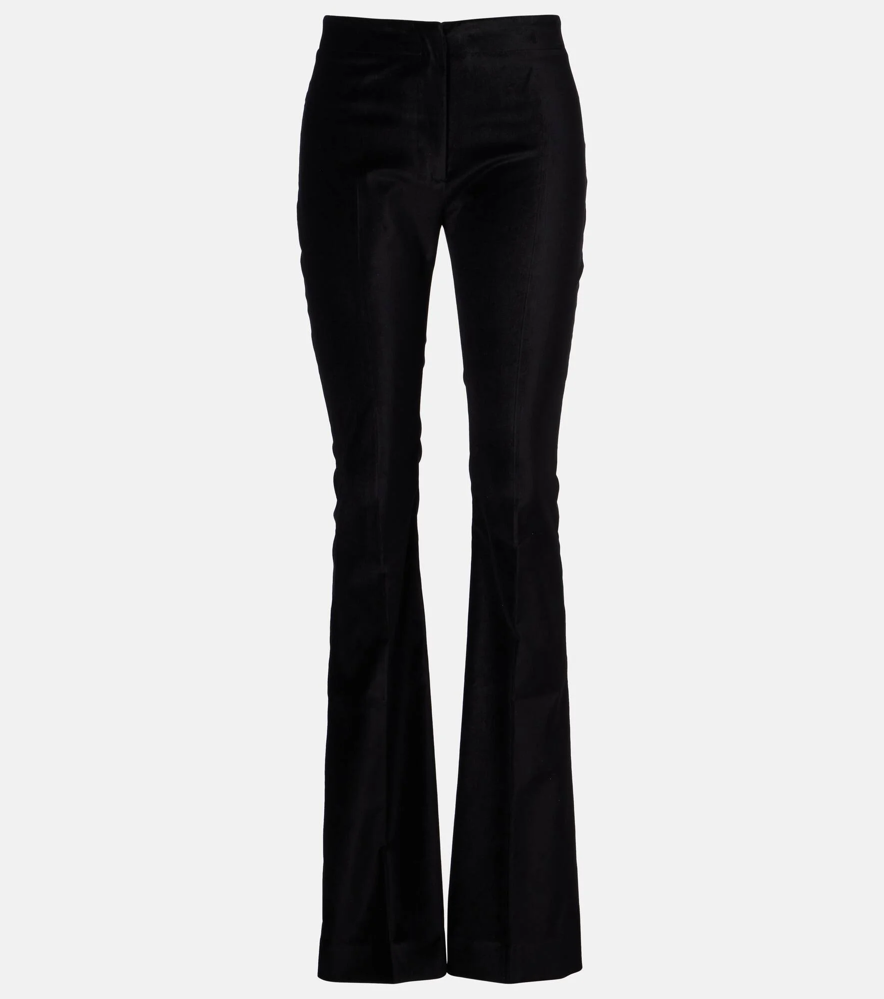 Tove creates minimalist silhouettes in neutral tones, constructed from excellent materials. The Roux flared pants are crafted from a cotton blend velvet and boast a high-rise silhouette. Product Details - Material: 74% cotton, 23% modal, 3% elastane - Care instructions: dry clean - Made in Portugal - Designer color name: Black - Item color: black - Pockets: back pockets - Closure: zip and hook fastening - Item number: P01096260 Size & Fit - True to size - Non-stretchy fabric - Slim-leg with a flared hem - High-waisted - The model seen in the picture is 178cm-5'10" and wearing a size FR 36