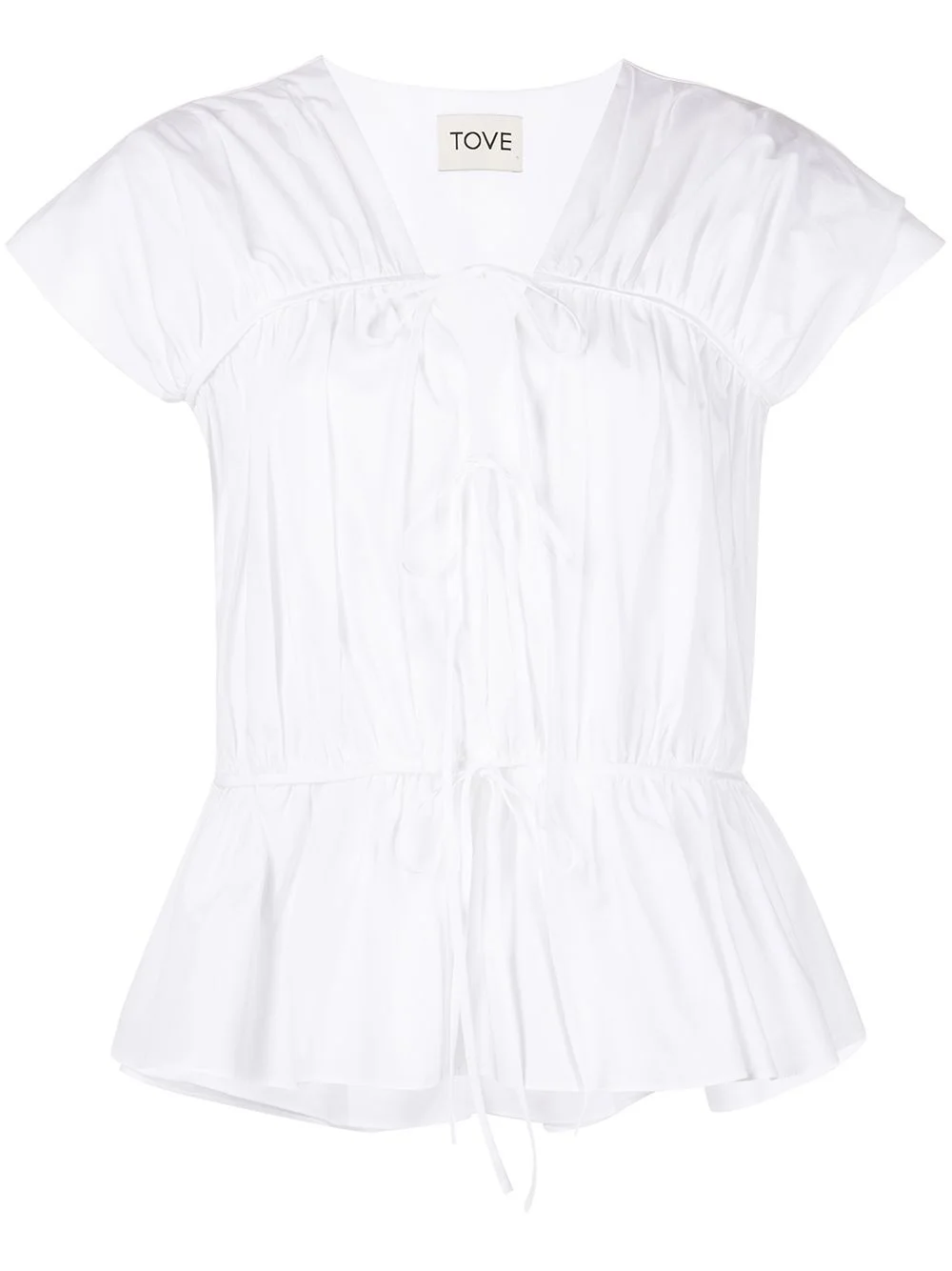 Thea ruffle top whtie cotton ruffled detailing V-neck front tie fastening sleeveless Imported Composition Cotton 100% SIZE & FIT Model measurements Height 5 ft 10 in(1.77 m) Bust/Chest 31.88 in(81 cm) Hips 34.64 in(88 cm) Waist 24.01 in(61 cm)