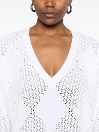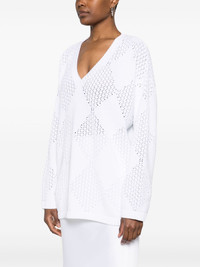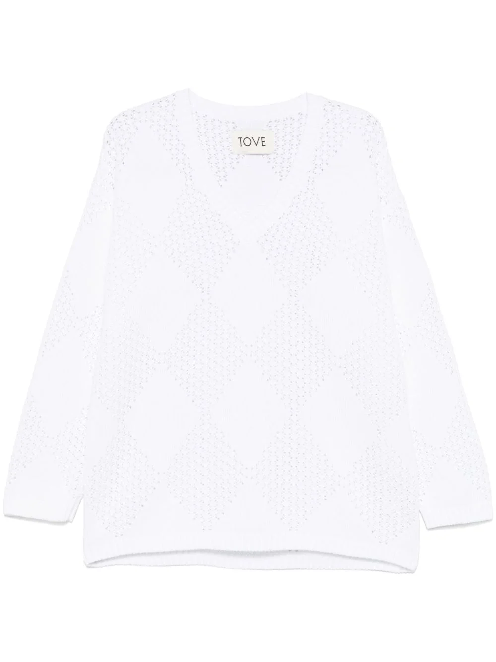 Yara sweater Highlights - White - Ribbed cuffs and hem - Diamond pattern - Drop shoulder Imported Composition Cotton 100% SIZE & FIT Model measurements Height 5 ft 11 in(1.8 m) Bust/Chest 31.49 in(80 cm) Hips 36.61 in(93 cm) Waist 24.4 in(62 cm) FittingInformation Designed to be unstructured, offering a loose fit throughout Made with a midweight knit, this piece offers some stretch
