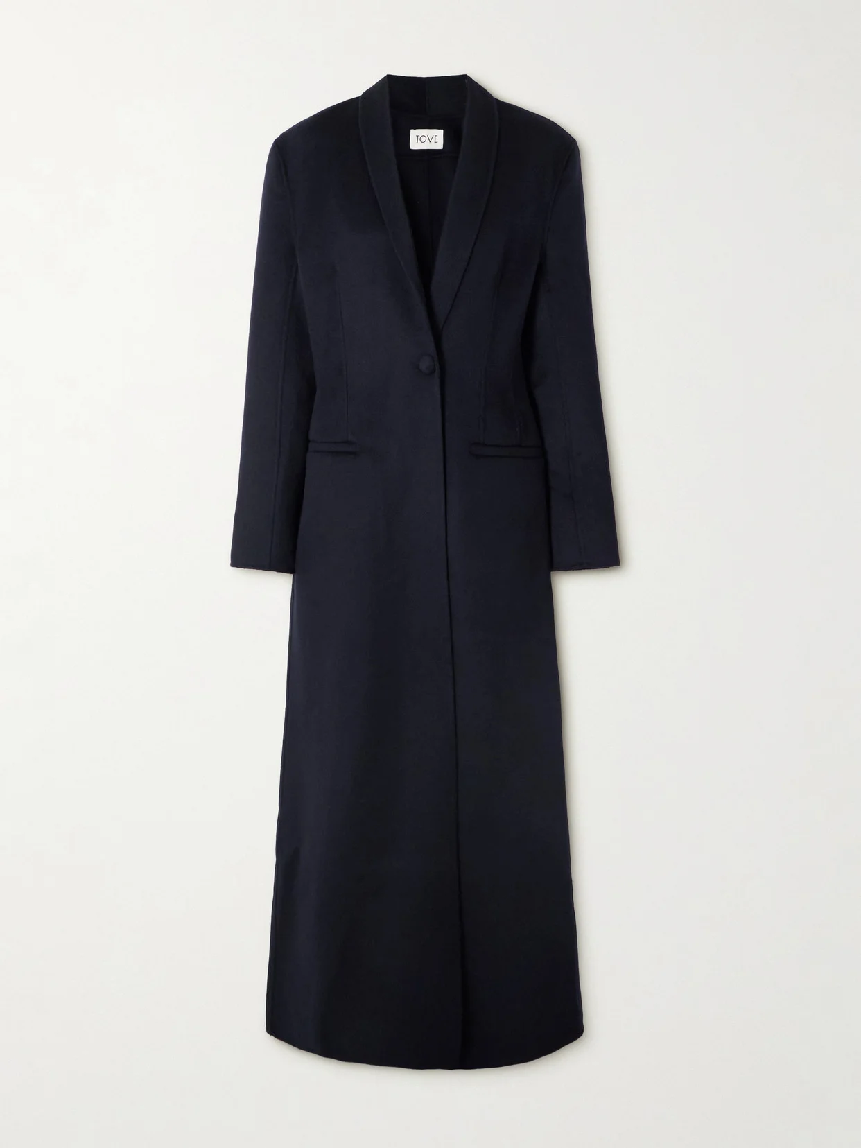 TOVE's 'Zahra' coat is a smart and timeless classic you'll turn to for seasons to come. Tailored from a navy wool-blend, it has slim shawl lapels and is left unlined for a gently unstructured shape. The darted waist adds definition to the loose fit.