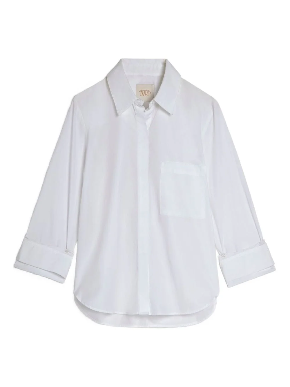 Boyfriend pocket three-quarter sleeve shirt Highlights - White - Three-quarter sleeves - Front button fastening - Curved hem - Single chest pocket - Double cuffs Made in United States Composition Cotton 100% Washing instructions Read Manufacturer Guidelines